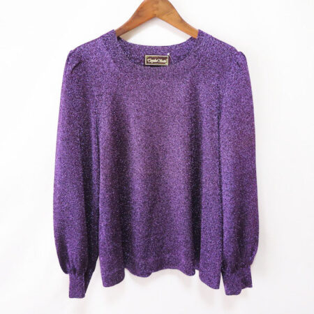 斉藤都世子のニットを買取しました。出張買取です。紫の綺麗さが際立つお洋服です。ニットでありながらも煌びやかで落ち着きもあるのが大人から選ばれる理由。袖もキュッとなっていてスタイル良く見せられます。
