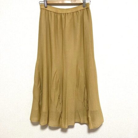 店頭預り買取にてコーザノストラのスカートを買取しました。40サイズです。シルクを使用した上品な仕上がりのスカート。黄色ではありますが落ち着きもしっかりあり大人な女性に決めていただけます。