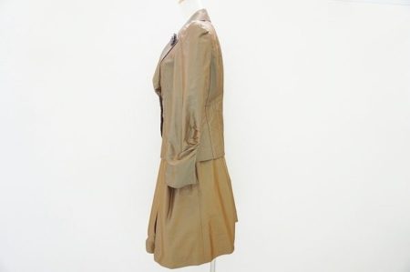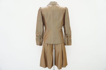 見る角度によって微妙に光沢具合が異なり、ハリのある生地感が楽しめるレディーススーツを買い取りさせていただきました。