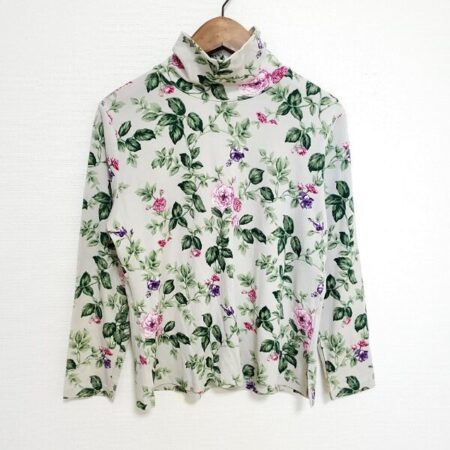 出張買取ご利用のお客様よりバラ色の暮らし カットソーを買取しました。緑が多めのバラが控えめにそして可愛らしく咲いてくれます。トップスでの活用はもちろんのこと、何かの下から見せていただくのもいいですね。