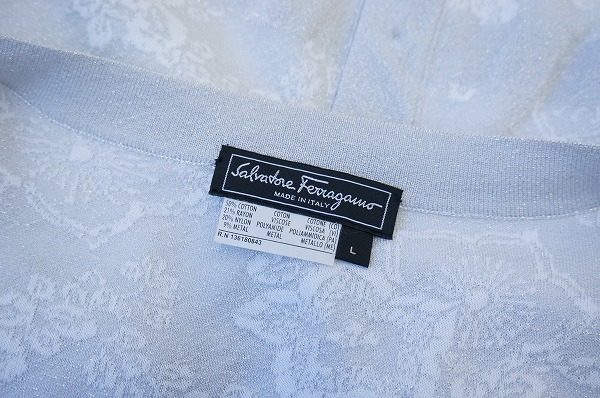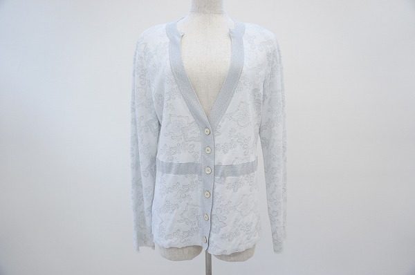 シルバーでさりげなく描かれた花柄が上品さを演出。フェラガモのフェミニンなカーディガンをお売り頂きました