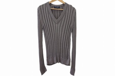 ドルチェ&ガッバーナのメンズカットソー・サイズ48を出張買取にて買取しました。落ち着いたグレーが特長です。シンプルなニットですが、どこか味のあるデザインでインテリな雰囲気を演出できます。上からダウンベストやカーディガンを合わせていただいてもスッキリ決まります。