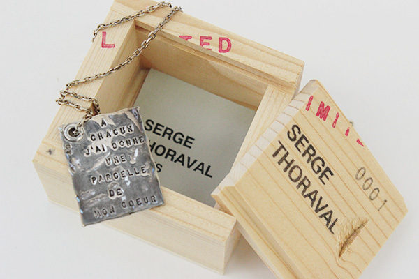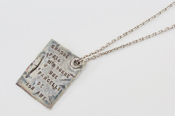 こちらのネックレスはプレートにメッセージが刻まれたデザインとなっており、シンプルながらもしっかりと存在感があるのはさすがセルジュトラヴァル。