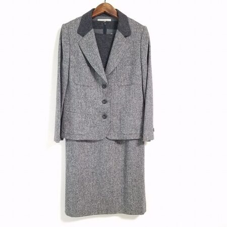 出張買取にてジュンアシダのワンピーススーツを買取しました。グレーでカッコよくまとまるありがたいスーツです。少しだけメンズライクな雰囲気も感じますが、しっとり真面目な大人に仕上げてくれます。