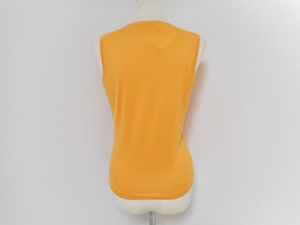 ノースリーブのデザインで女性らしさを見事に表現しています。また、キメの細かいその編み地は決して着る者に不快感を与えません。オレンジの色合いがとても素敵な逸品ですね。