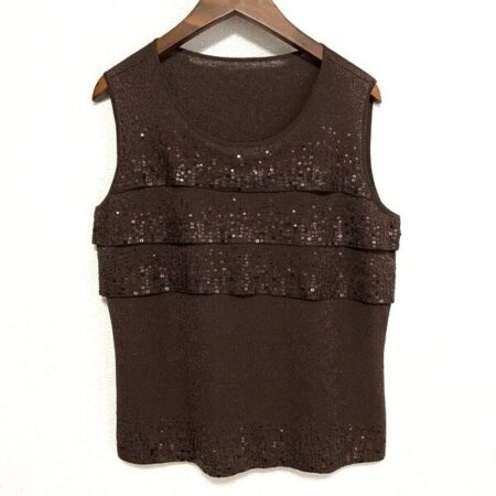 出張買取にてレリアンのカットソーを買取しました。サイズは11です。濃いめのブラウンに豪華なスパンコールがしっかりと映えるのが嬉しいですね。パンツでもスカートでも合わせやすくお好きなボトムスを合わせられるのも魅力。