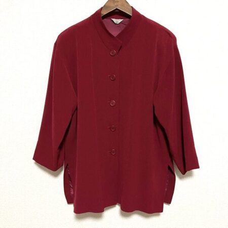 三年坂のジャケットを買取しました。中国地方にお住まいのシニア世代の方から出張買取にて買取したお品です。濃いめの赤とスリットが入った特殊なデザインに心惹かれてしまいます。どこか落ち着きをくれるのも嬉しいですね。