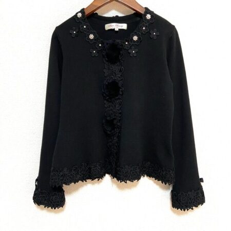宅配買取でスーパービューティーのカーディガンを買取しました。黒ではありますがしっとりした雰囲気があります。ビジューの美しさもしっかり出ていていいですね。綺麗めスカートからカジュアルパンツまで相性抜群!