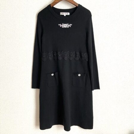 出張買取にてスーパービューティーのワンピースを買取しました。黒でかっこいい印象かと思いきや程よい量のビジューが明るさを加えてくれます。ベルトなどをしてアレンジするのも良いですね。