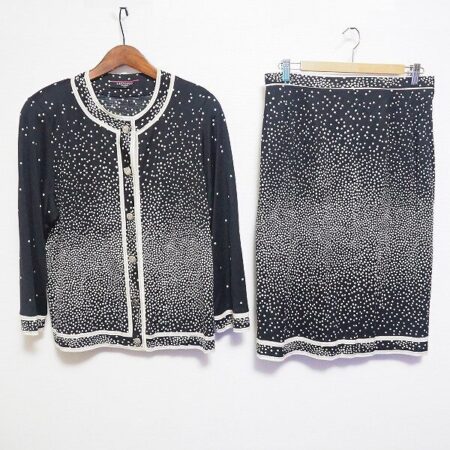 出張買取にてレオナールのセットアップを買取しました。黒に賑やかな装飾がマッチした1点。シルクを使用したお洋服ですので、着心地も最高の1枚です。