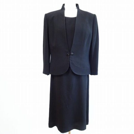 店頭預り買取にてニナリッチのワンピーススーツを買取しました。フォーマルタイプです。七分袖で手首を見せられスッキリ決めていただけます。ノーカラーで圧迫感も少ないのもポイントかと思います。