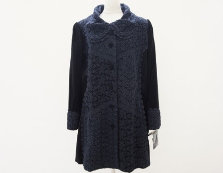 大人女性でも可愛くおしゃれを楽しめるアイテムが揃っているバラ色の暮らしから、繊細なレースデザインでフェミニンなコートを買取査定させていただきました。タグ付きで使用感の無い稀なお品物ですので古着に抵抗のある方や出来るだけ新品同様の物が欲しい方にオススメ!ブラックのコートは地味で重くなる事も多いのですがレースデザインで黒でも華やかで重くなり過ぎず冬のお洒落を楽しませてくれます。