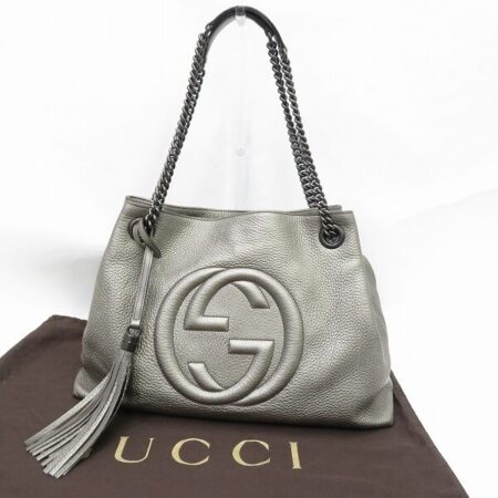 出張買取にてグッチのショルダーバッグを買取しました。ガンメタリックで美しくスッキリした雰囲気を作り上げてくれるバッグです。持ち手もチェーンですので爽やかさもプラスしてくれます。