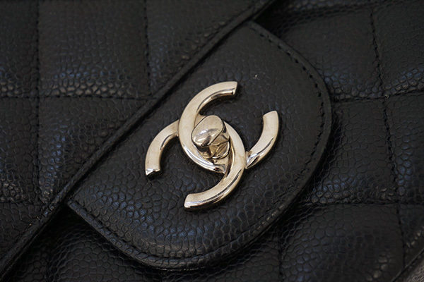 重厚な質感のチェーンショルダーに、さらに重厚さと高級感をプラスするキャビアスキンのマトラッセは、とにかくインパクトがすごい!