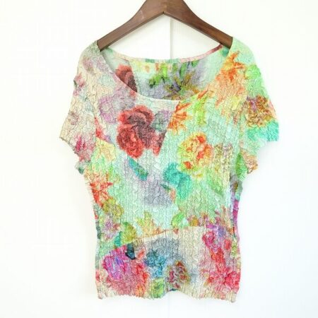 出張買取におきましてユキトリイのカットソーを買取しました。見つめるほどに気持ちも上がるような綺麗な色使いが特徴のカットソー。お花もゴージャスです。サイズはLをお譲りいただきました。顔周りをパッと明るくしたい時にいかがでしょうか。