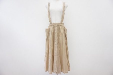 やさしいベージュ色が可愛いこちらのサロペットスカート。