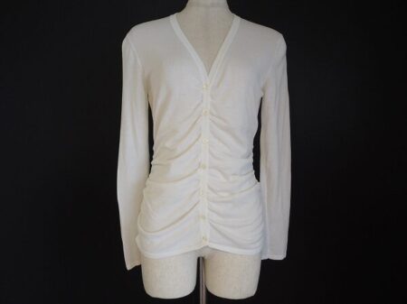 出張買取ご利用のお客様よりマーロのカーディガンを買取しました。マーロはニットを始め素材にこだわったお洋服が特徴。レディースだけでなくメンズラインも手掛けており、人気があります。お譲りいただいたカーデガンは中心がドレープになっていることで締まった雰囲気にしてくれます。シンプルな白なので長いシーズン着ていただけるのも嬉しいですね。