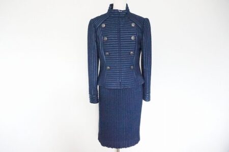 ミスアシダのスカートスーツを出張買取ご利用のお客様より買取しました。ミスアシダは清楚な雰囲気の洋服が多いミセス世代から支持の高いファッションブランドです。ナポレオン風のモダンな雰囲気漂うスカートスーツはできる女性を演出してくれるだけでなく、あか抜けた印象に仕上げてくれます。