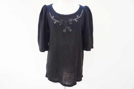 斉藤都世子ニットを出張買取にて買取しました。落ち着いた印象のネイビーニットですが、首元にシルバーのラインストーンを散りばめることで、グッと高級感のある印象に。リボンやバルーンスリーブが女性らしさを演出してくれるのも嬉しいですね。