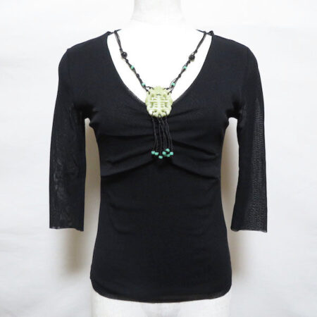 人気ブランドのヴィヴィアンタム。カットソーを出張買取ご利用のお客様より買取しました。シンプルな黒のカットソーにネックレス風モチーフががちっとハマっています。程よい煌びやかさがいいですね。