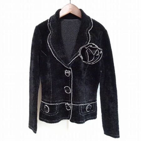 出張買取にてノコオーノのジャケットを買取しました。サイズは38です。黒と白でしっかりコントラストが出て綺麗にそして煌びやかに着ていただけるジャケットです。無地のお洋服にサクッと羽織るのもいいですね。