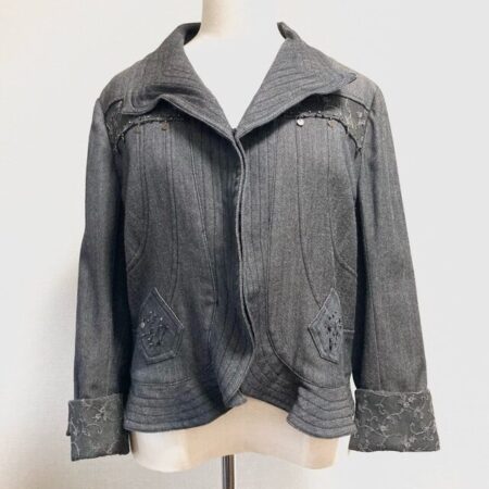 出張買取でノンノンドールのブルゾンを買取しました。デニム風の安定したグレーが大人可愛いを演出してくれます。レースやビーズの可愛らしさも適度に際立つのが嬉しいですね。