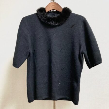 ハナエモリのニットを買取しました。サイズはLです。カシミヤ素材で温かさ抜群ですし駄目押しにミンクファーもついています。ちょっと上級に見せたい時にもおすすめです。