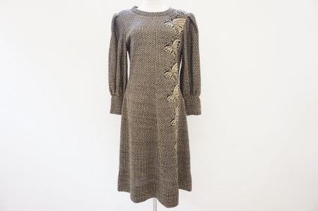 斉藤都世子ワンピースを出張買取にて買取しました。ゴールドとブラックの中にバタフライのモチーフがエレガントな1枚です。ニットワンピースで温かさも確保しつつ、女性のラインを綺麗に活かしてくれる嬉しい点がたくさん!カラフルなストールやマフラーを合わせていただいても、また更にエレガント感をアップしてくれる、万能アイテムです。