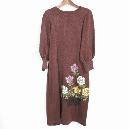 斉藤都世子のワンピースを出張買取ご利用のお客様より買取しました。茶色系にバラの刺繍がよくマッチした1点。下方にあるため、飽きづらく可愛らしさを表現できます。