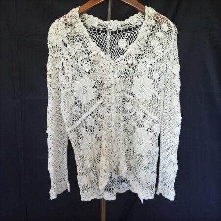出張買取にてバラ色の暮し カーディガンを買取しました。サイズはMです。ベージュの柔らかさを感じられて楽しめます。さりげないさくらんぼモチーフも心ときめきます。