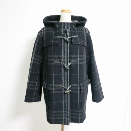 バーバリーならではのチェックも自然に楽しめるコート。出張買取ご利用のお客様より買取しました。フード付きで程よくスッキリきていただける1着です。赤やグリーンのニットなども映えそうです。