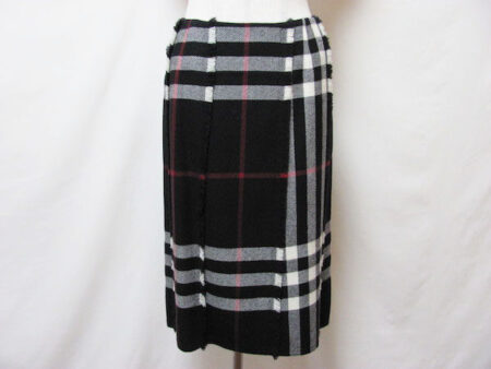バーバリー BURBERRYのスカートをお客様より買取しました。バーバリーの定番ともいえるチェック柄が何とも上品なスカート。フリンジが大人可愛いデザインですね。黒のタイトスカートなのでオンオフ兼用で大活躍してくれそう。スカートだけでも十分素敵なのでトップスはシンプルな色やデザインの物を合わせるとバーバリーのチェック柄がより引き立ちます。