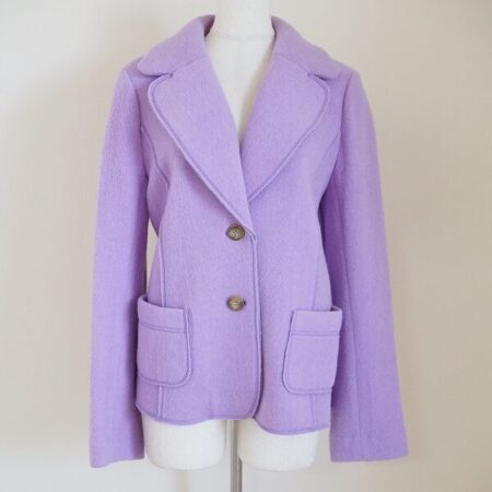 ユキコハナイのジャケットを買取しました。出張買取です。目をそらしたくなくなるほど美しいパステル紫。アンゴラも使用しているため保温性にも優れています。立体感もあり、メリハリある印象に仕上げられますね。
