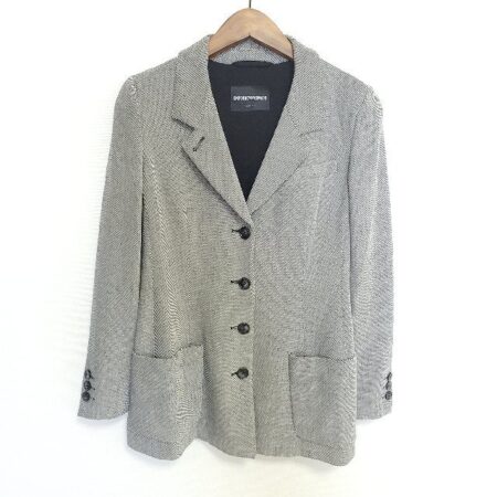 出張買取にてエンポリオアルマーニのジャケットを買取しました。42サイズです。黒と白のバランスをうまくとりつつきっちりした雰囲気にしたジャケット。スマートすぎず柔らかさが程よくあるので気軽に着ていただけます。