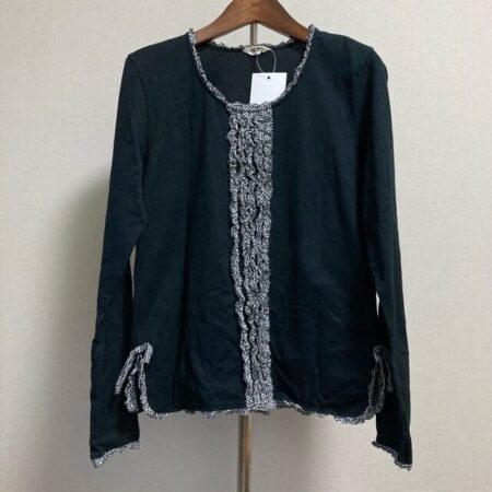 ピンクハウスのカットソーを買取しました。サイズはLです。黒でカッコよさを出しつつもフリルやリボンでさりげなくキュートな雰囲気を足す、ピンクハウスならではの裏技。程よい華やかさを演出できるのがいいですね。