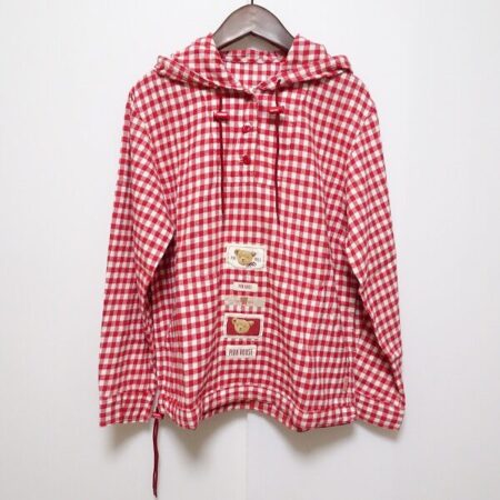 出張買取いてピンクハウスのブラウスを買取しました。定番の赤チェックに可愛いクマが付いた心も癒される1枚です。パーカーがついているのも何かと使いやすくて高評価ポイントですね。