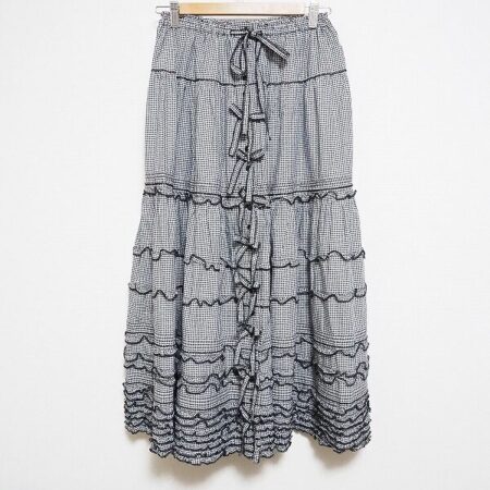 出張買取にてピンクハウスのスカートを買取しました。黒と白のチェックですが、リボンもピコフリルも盛大ですので物足りなさを感じさせずシンプルにぎやかに楽しんでいただけます。