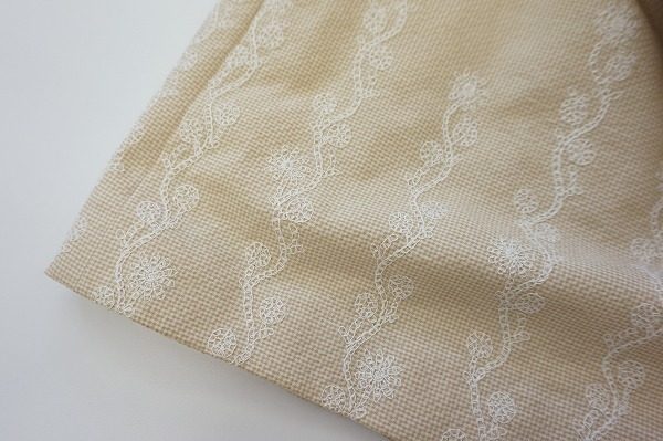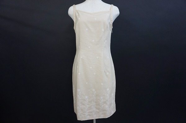 女性らしいきれいなシルエットで、生地に上品な花の刺繍で、まるでスカート部分の裾から上に花が咲いているようにも見え、エレガントで華やかな印象です。