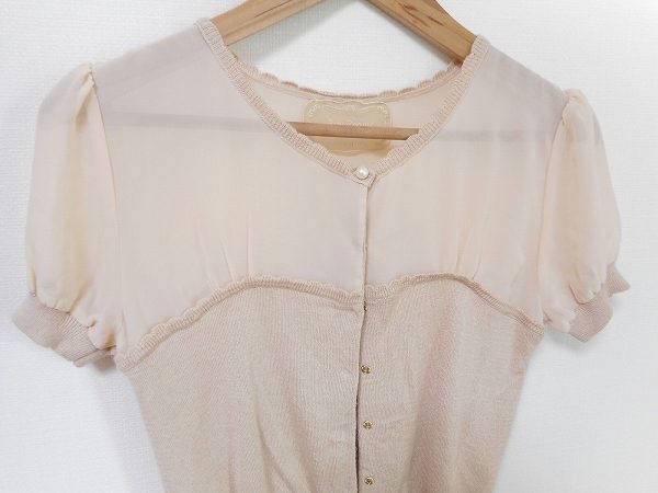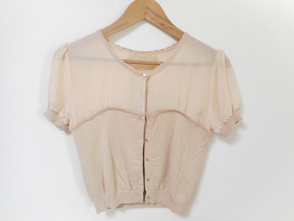 今回ご紹介するのはファッションにキュートな彩りを与えるソフトリーなカラーリング、質感の半袖カーディガンとなります。