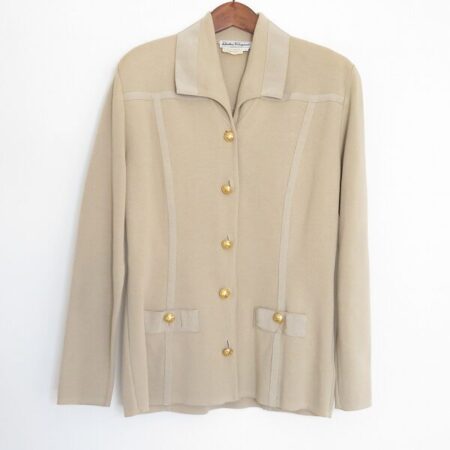 フェラガモのジャケットを買取しました。優しく心地のいいベージュが素敵な1枚。かっちりしすぎていないので余裕を持って上品さを追求していただけます。