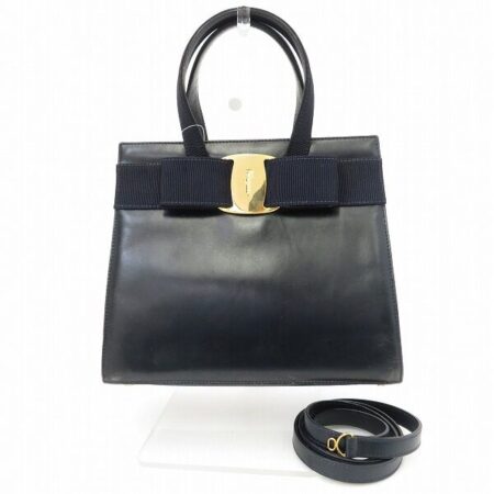 フェラガモ ヴァラ ハンドバッグを出張買取ご利用のお客様より買取しました。コンパクトなサイズ感、濃紺とゴールドの高級感が素敵なバッグです。ハンドバッグとして持てるだけでなくショルダーとしても使えるのがありがたいポイントです。