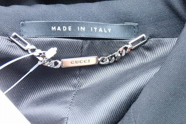 こちらのセットアップもグッチのものです。素材はメインにウールを使い、わずかにポリウレタンを混紡することで、着心地や型崩れの防止にまで配慮されています。スタイルはクラシカルな3つボタンのスカートタイプです。
