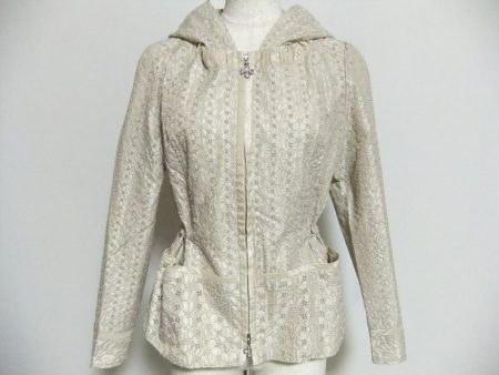 上品な光沢のある生地に女性らしい花柄が愛らしく、何にでも合わせやすいアイボリーカラーで幅広い着こなしに役立ちそうなブルゾン。