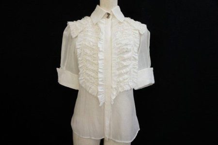 今回、お譲りいただいたのは、純白カラーにたっぷりのフリルディティールが可愛いブラウス。