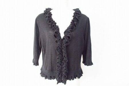 女性らしいデザインが特徴的なトクコ。大胆なフリルがトクコらしいカーディガンを出張買取ご利用のお客様より買取しました。クールな印象もある黒ですが贅沢使いしたフリルがそうはさせません。首元が開いたものからタートルタイプのアイテムの上からも羽織っていただけるかと思います。
