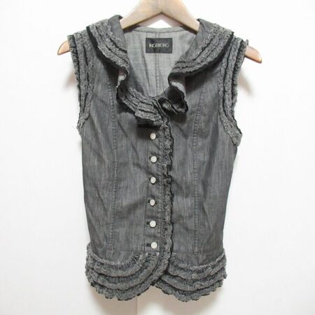 出張買取にてインゲボルグのベストを買取しました。サイズはSです。黒デニムのハードさとフリルの可愛らしさがたまりません。まとまったシャープなデザインというのも特長かと思います。
