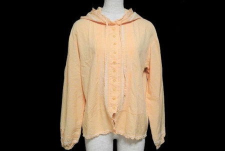 ピンクハウスのシャツブラウスを出張買取にて買取しました。フード付きのシャツブラウスです。フードタイプでも、フリルがしっかりとあるためカジュアル過ぎない印象に。動きやすくどこかスタイリッシュになります。公園やアウトドアなどちょっと体を動かしたい外出にもオススメです。
