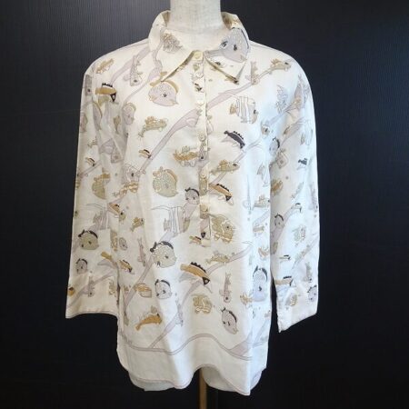 エルメスのシャツを出張買取ご利用のお客様より買取しました。珍しい魚柄がポイント。よく見ないとわからないのもミステリーさがあり魅力の1つでもありますね。高級感に溢れています。着心地も期待できる麻です。