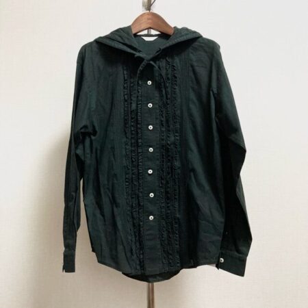 出張買取ご利用のお客様よりピンクハウスのブラウスを買取しました。黒字に白ボタンが映えるブラウス。フードがあり、カジュアルさもさりげなくプラスできるのが嬉しいですね。