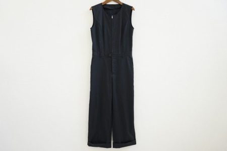 しっかりとした素材感のブラックコンビネゾンで、デイリー使いからフォーマルなシーンまで幅広く重宝しそうなアイテムです。